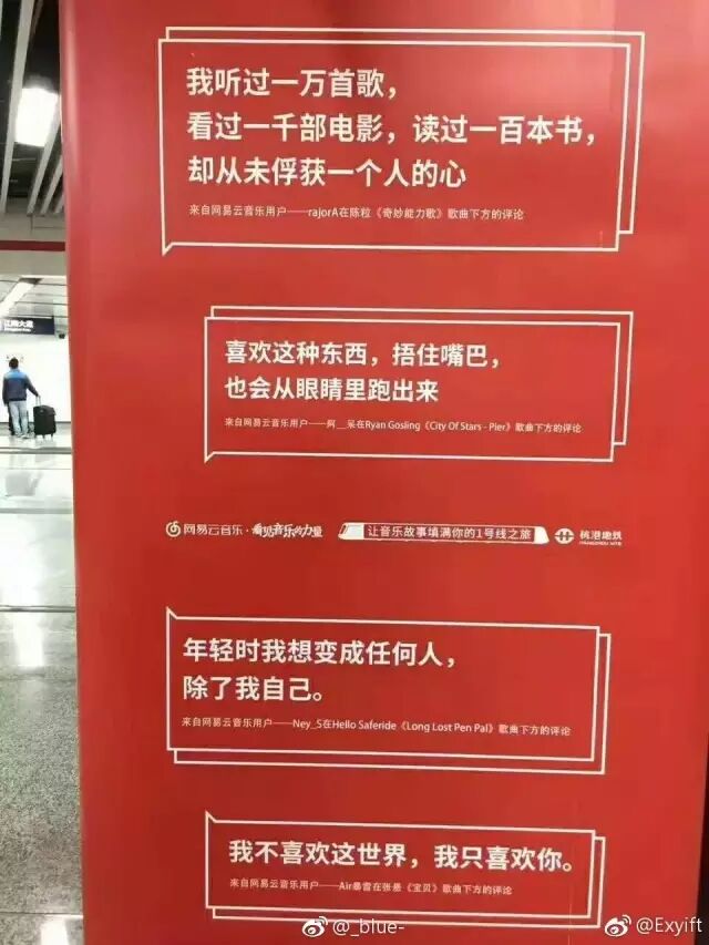虽说确实是打感情牌走的煽情路线,可也却是网易云营销,带动了一大波地铁纯字海报的出现。
