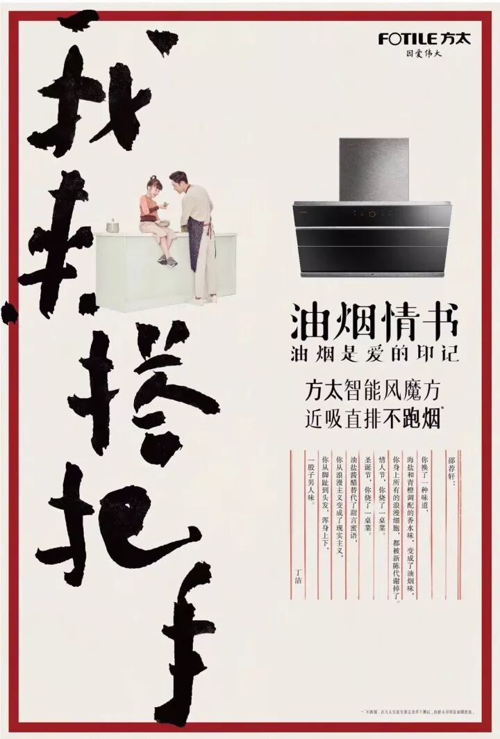 油烟机做出如此诗情画意的文案,视频的故事、文字中的行走,满满的,都是被爱包围的充实感。